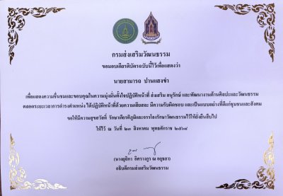 วันที่ 23 สิงหาคม 2568 นายสามารถ ปานแสงขำ นายกองค์การบริหารส่วนตำบลแวงดง เข้าร่วมรับมอบเกียรติบัตร เพื่อแสดงความชื่นชมและขอบคุณในความมุ่งมั่นตั้งใจแฏิบัติหน้าที่ให้สภาวัฒนธรรม ระดับตำบล ระดับอำเภอ และระดับจังหวัด ในงานเฉลิมฉลองวาระครบ 160 ปี เมืองมหาสารคาม
