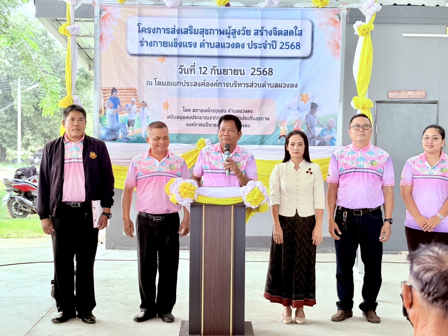 วันศุกร์ที่ 12 กันยายน 2568 นายสามารถ ปานแสงขำ นายก อบต.แวงดง มอบหมายให้ นายศักดิ์ศรี จิตไธสง รองนายก อบต.แวงดง เป็นประธานในพิธีเปิดงานโครงการส่งเสริมสุขภาพผู้สูงวัย สร้างจิตสดใส ร่างกายแข็งแรง ตำบลแวงดง ปี 2568 ณโดมเอนกประสงค์ อบต.แวงดง สนับสนุนงบประมาณโดยกองทุนหลักประกันสุขภาพตำบลแวงดง องค์การบริหารส่วนตำบลแวงดง